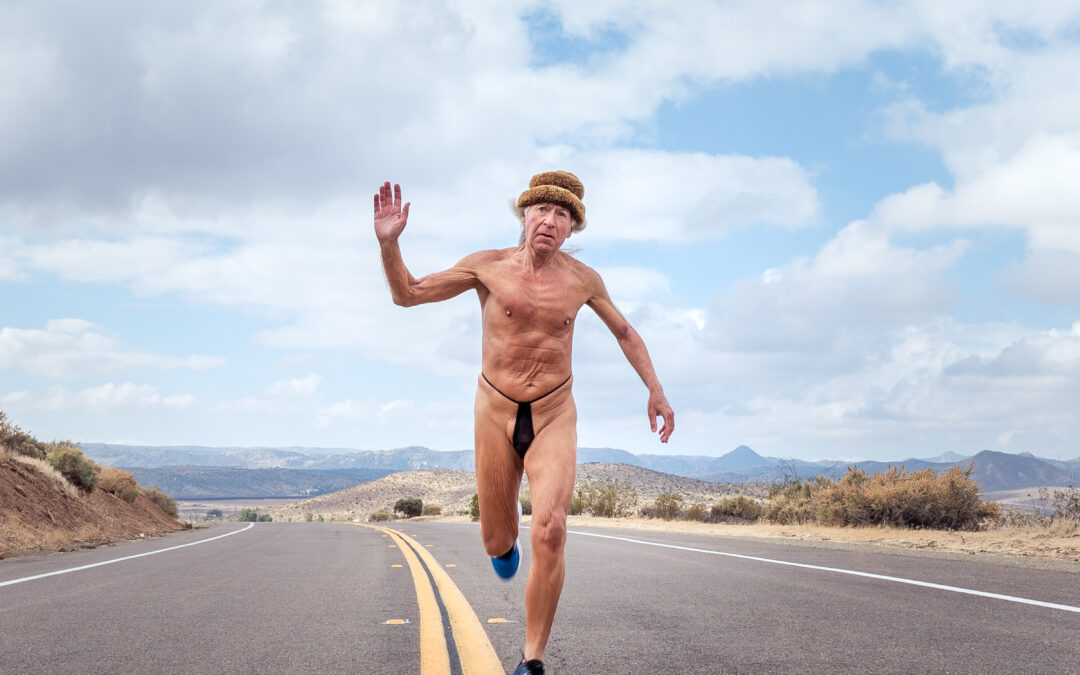 Judgment is easy; self-acceptance is hard. The man’s comfort in his own skin contrasts with others’ discomfort in theirs.